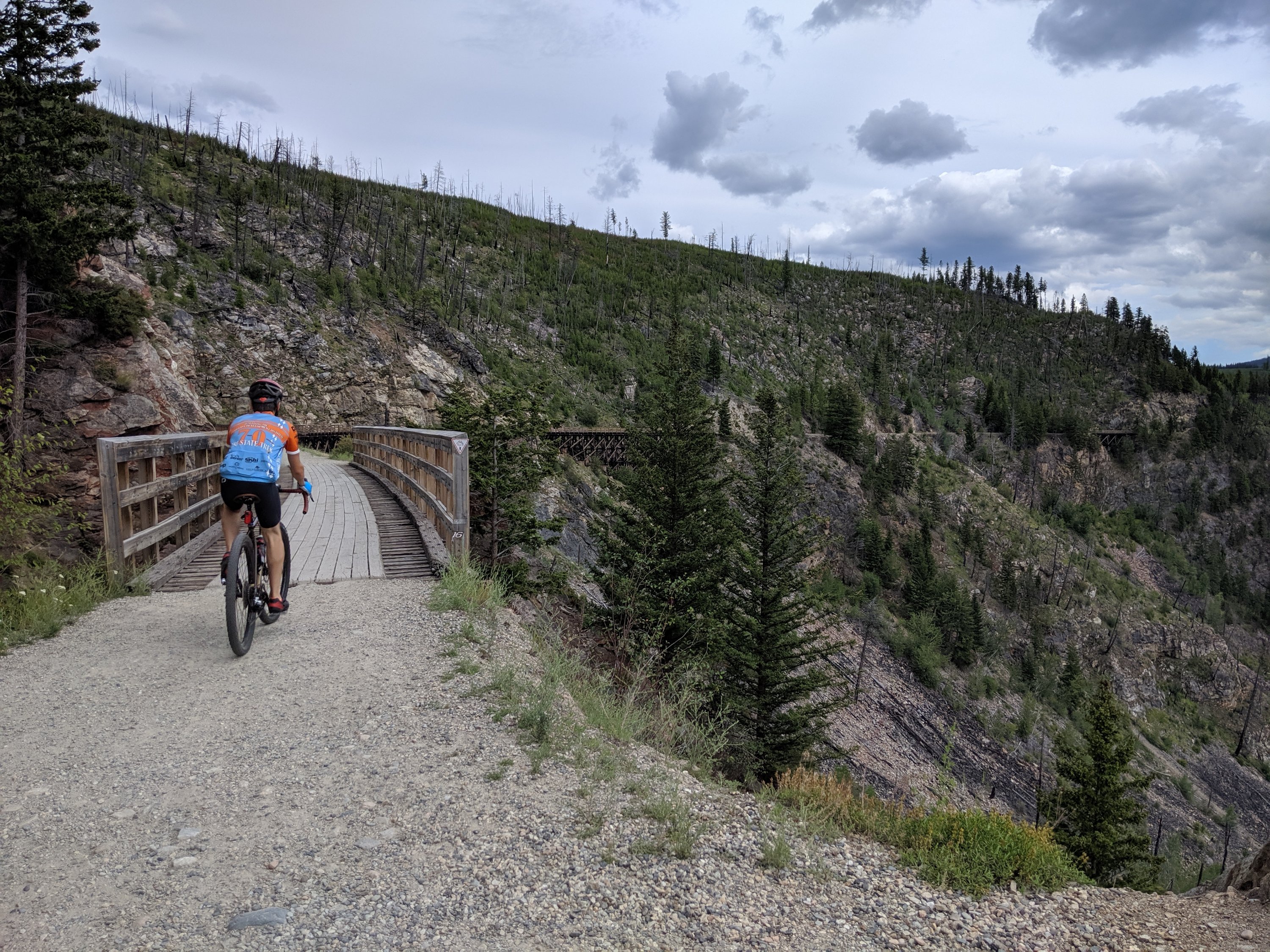 After remembering we didn’t have any Canadian dollars and luckily finding an ATM in a small town, we arrived at our destination for the night, Hydraulic Lake Recreation Site southeast of Kelowna, BC. We picked the spot to have direct access to the Kettle Valley Railway Trail. We found this trail with a quick Google search and were immediately intrigued. Along with a few other trails in the area, it creates a nearly 400 mile network off largely off road, gravel bike trails. Although tempted to alter our plans to do the whole thing, we settled for about a 30 mile out and back section from the campground through Myra, which includes several railroad trestles and tunnels. While on the ride, we started daydreaming about the future Salmonberry Trail planned through the Oregon Coast Range. While we love road riding, we are finding gravel riding to offer a little more excitement from the trail and significantly less excitement from cars. This ride also helped confirm we are happy with our bike choices for the trip – we were pretty tempted to bring both our mountain bikes and road bikes.