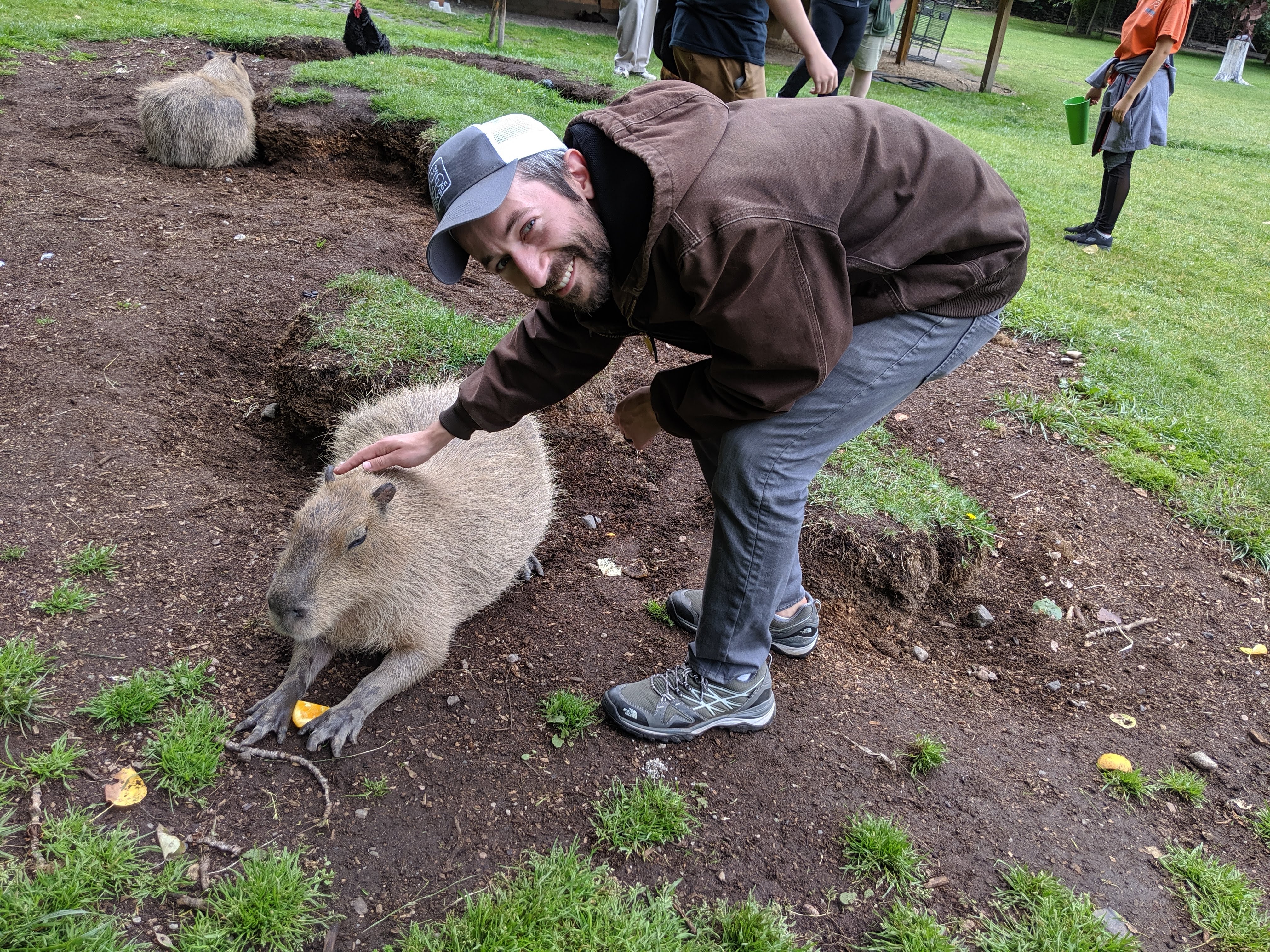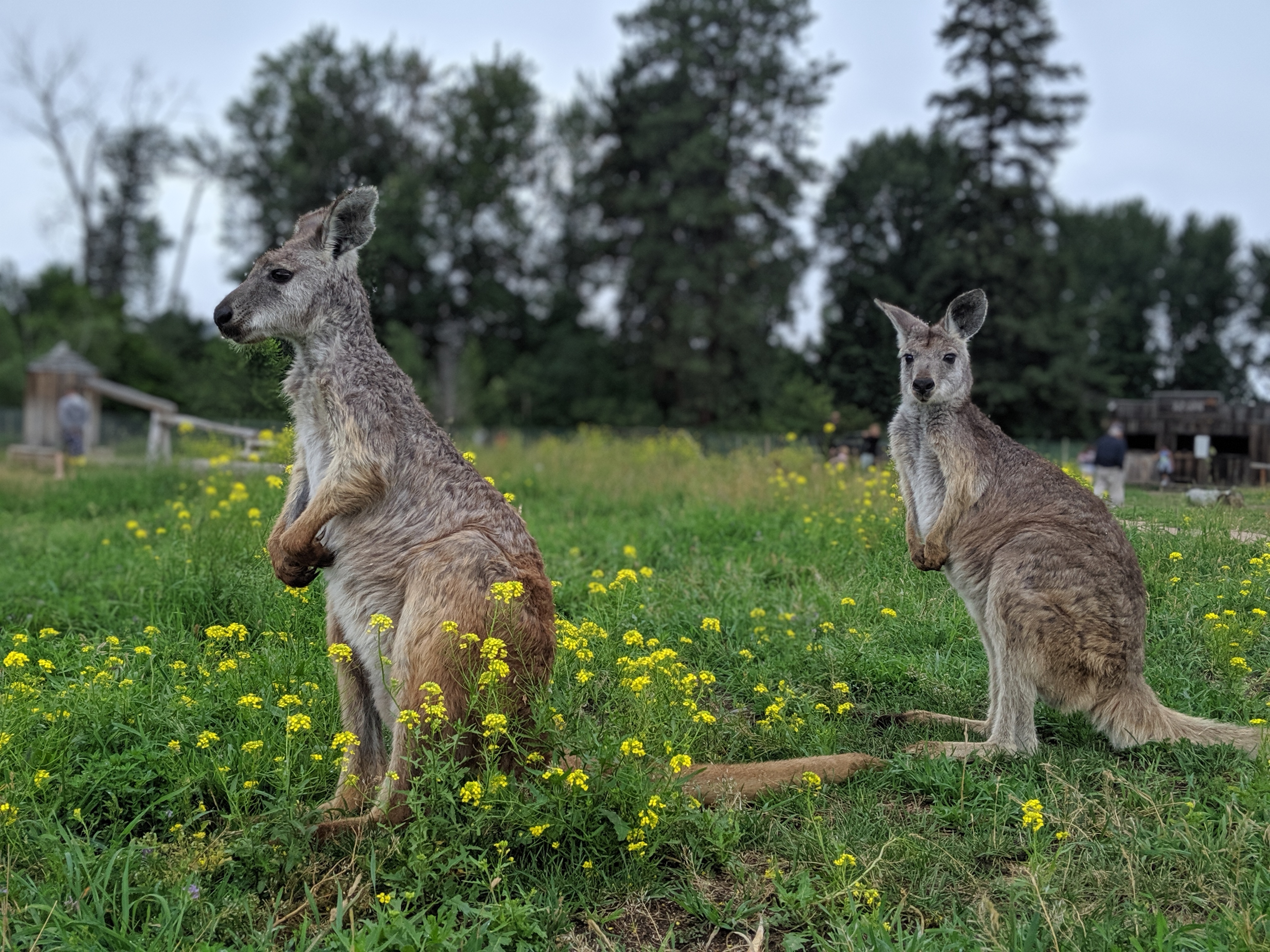 We spent a lovely evening with Mary and Craig in Lake Country, BC, the couple we hosted through Airbnb. We first visited Kangaroo Creek Farm, per their recommendation. We saw and pet some amazing creatures. Most interesting was the Patagonian Cavy, which is the third largest rodent in the world. I also enjoyed the capybara, which are vegetarians and were enjoying a special orange slice treat. We learned the kangaroo gestational period is only 28 days, although the Joey will then hang out in the pouch for a few months. One albino wallaby at the farm was currently carrying a 5 month old Joey. All we could see where a few big feet sticking out! David had to practically drag me from this place as I could have spent way longer scratching kangaroo heads.