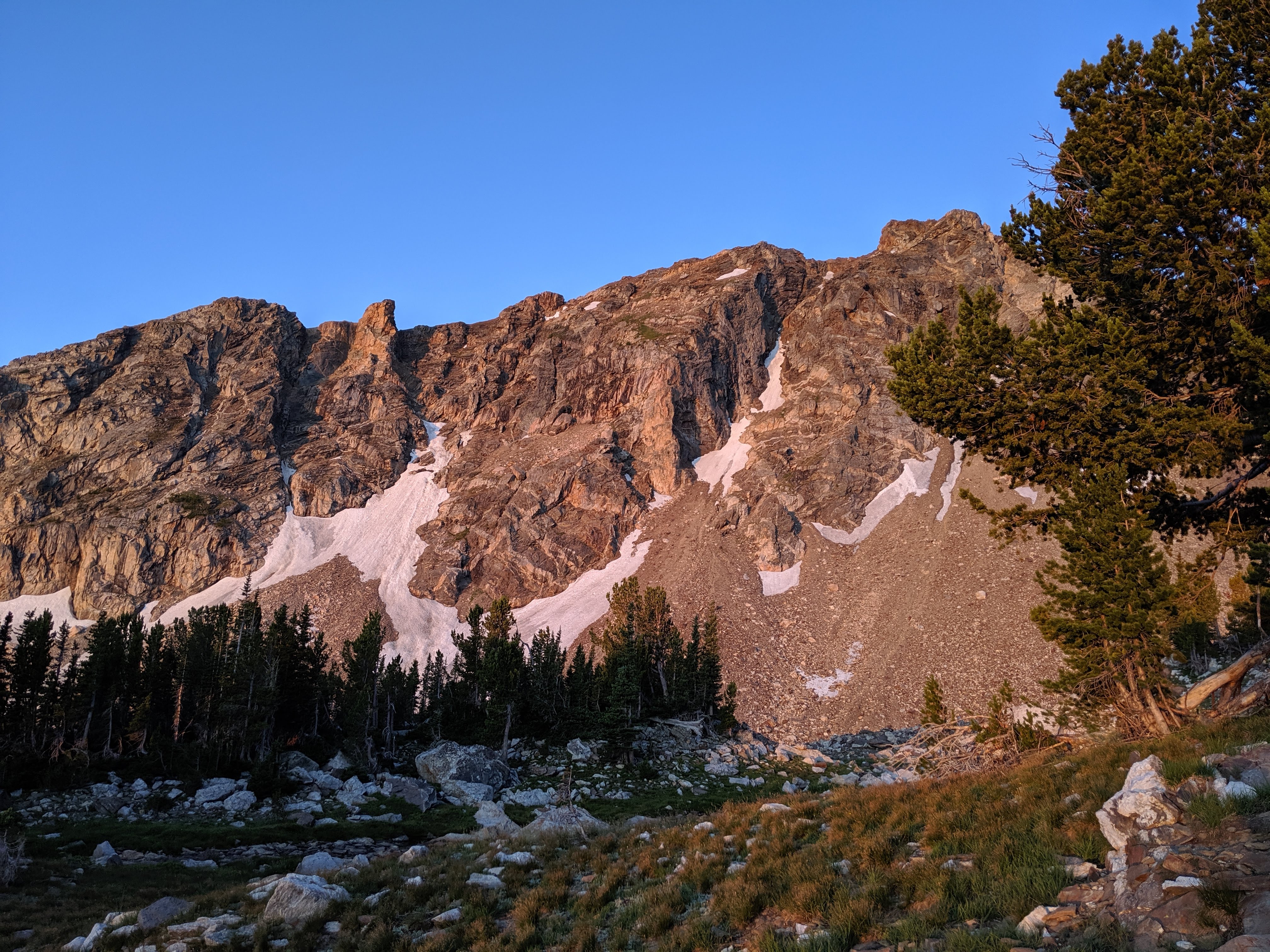 We did a few hikes in the Tetons and most enjoyed a backpacking trip of Paintbrush Canyon and Cascade Canyon. We were fortunate to snag a permit for the trip, as a portion of permits are reserved for walk-ups the day before the night of the permit. We camped in the Upper Paintbrush Zone where we enjoyed both sunset and sunrise colors on the surrounding mountains. As David remarked, it is hikes like this that help us snap out of nature snob mode. I think it also helps to spend the night out in nature and enjoy some solitude. In the morning we finished the elevation gain of the hike and reached Paintbrush Divide at 10,700 feet, which has incredible views of Thor Peak, Mt. Moran, West Horn, Mt. Woodring, the Cathedral Group, and Rockchuck Peak (we couldn’t recognize any of the mountains by name, but I learned this from Teton Hiking Trails.com). From here it was about 10 miles to the van, which felt very, very long. A moose sighting helped increase morale a few miles before the end, as well as a good supply of Sour Patch Kids.