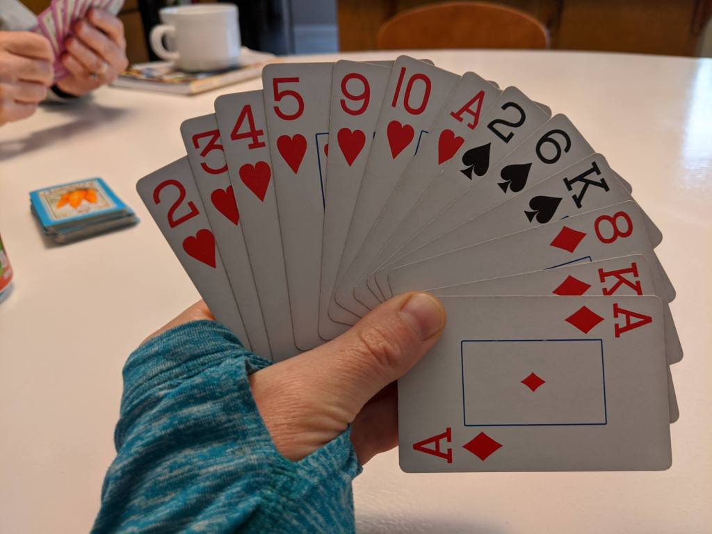 Playing bridge.